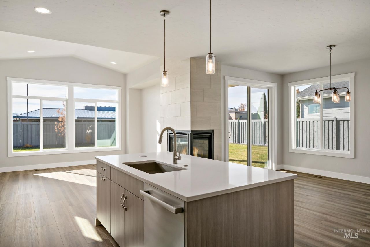 Welcome to the LAKEVIEW by Brighton! A spacious two-story home designed for comfort, style, and easy living. Located within walking distance of nearby elementary and middle schools, this home sits in Arbor, one of Nampas most desirable and established master-planned communities. The grand entryway opens to a bright den, creating an inviting first impression that sets the tone for the rest of the home. The open living area centers around a beautiful corner fireplace visible from the family room, dining area, and kitchen perfect for cozy evenings or entertaining guests. Upstairs, a large bonus room with vaulted ceilings offers space for movie nights, a playroom, or a home office. Enjoy both a covered front porch and a fully covered back patio for relaxing and entertaining outdoors. Enjoy tree-lined walking paths, open green spaces, two sparkling pools, tot lots, and a private clubhouse for get-togethers and special events. Just minutes from Treasure Valley Marketplace, youll have quick access to shopping, dining, and medical services. I-84 and Hwy 20/26 are close by for easy commuting to North Meridian or Boise. When youre ready for some adventure, visit Lake Lowell for fishing and water sports, or explore the local wineries, scenic backroads, and beautiful countryside of Canyon County.