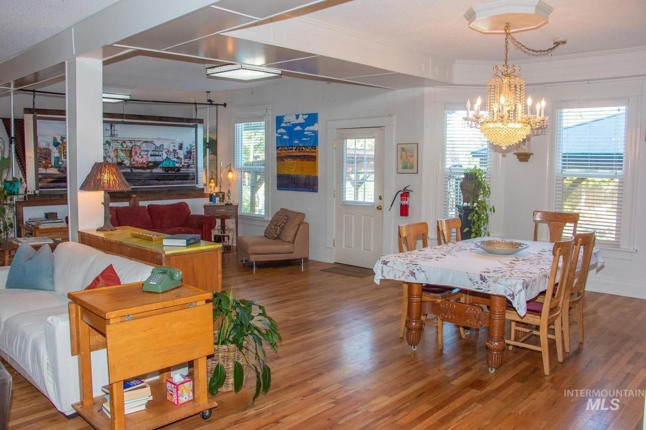An elegant 2-story home with a basement in downtown Nampa. This home sits on 2 city lots with the original carriage house, beautiful patio and completely fenced. Fully renovated home built in 1908, keeping the original charm. This property is in the Multiple-family Residential district /zone. Main level has a huge living room with a stage which can be used for small venues and also used as an Airbnb, has a fully equipped kitchen, and 1 bedroom, 1 bath on the main floor. Upstairs has 2 bedrooms, a bathroom, and a kitchen. Close to restaurants, shopping, and entertainment. There are options to purchase this home fully furnished.