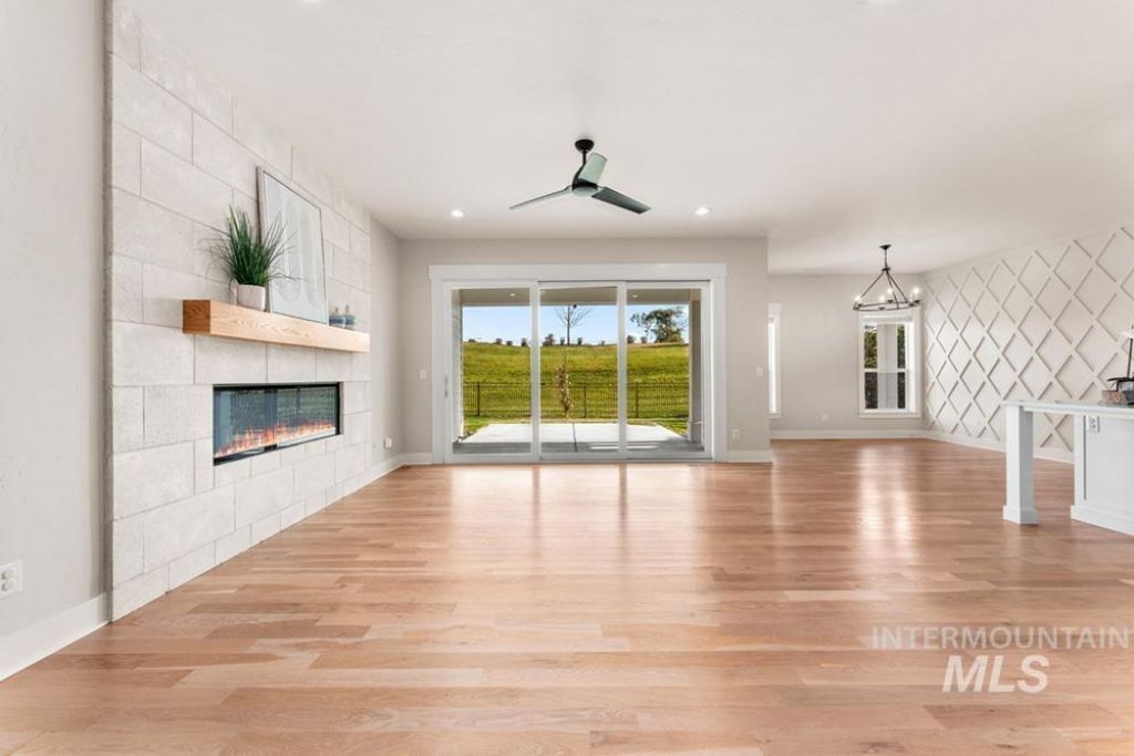 A refined retreat in Eagles premier Legacy community, this single-level home offers elevated design, thoughtful scale, and effortless living in one of the Treasure Valleys most desirable resort-style neighborhoods. The home embodies subtle luxury with high-end finishes, white oak hardwoods, 10-ft tall ceilings, and intelligently planned living & entertaining spaces. The open great room features a sleek linear fireplace wrapped in large-format tile and opens through wide, double sliding glass doors to a covered patio and east-facing backyard. With no rear neighbors and landscaped green extending beyond the fence line, the setting feels peaceful and open. The kitchen offers white cabinetry, a generous island, stainless steel appliances, and a seamless flow to the dining area. The primary suite includes marble surfaces, dual-sink vanity, soaking tub, frameless shower, and a spacious walk-in closet. An oversized two-car garage with additional overhead storage provides ample space for cars, outdoor toys, and other gear. Seller updates include remodeled bathrooms and a whole-house water softener/filtration system. Set within Legacys 590 acres, residents enjoy access to an outdoor pool, paved paths, sport courts, ponds, and a 3-hole golf course. Rare opportunity to own in this luxury community at this price point.