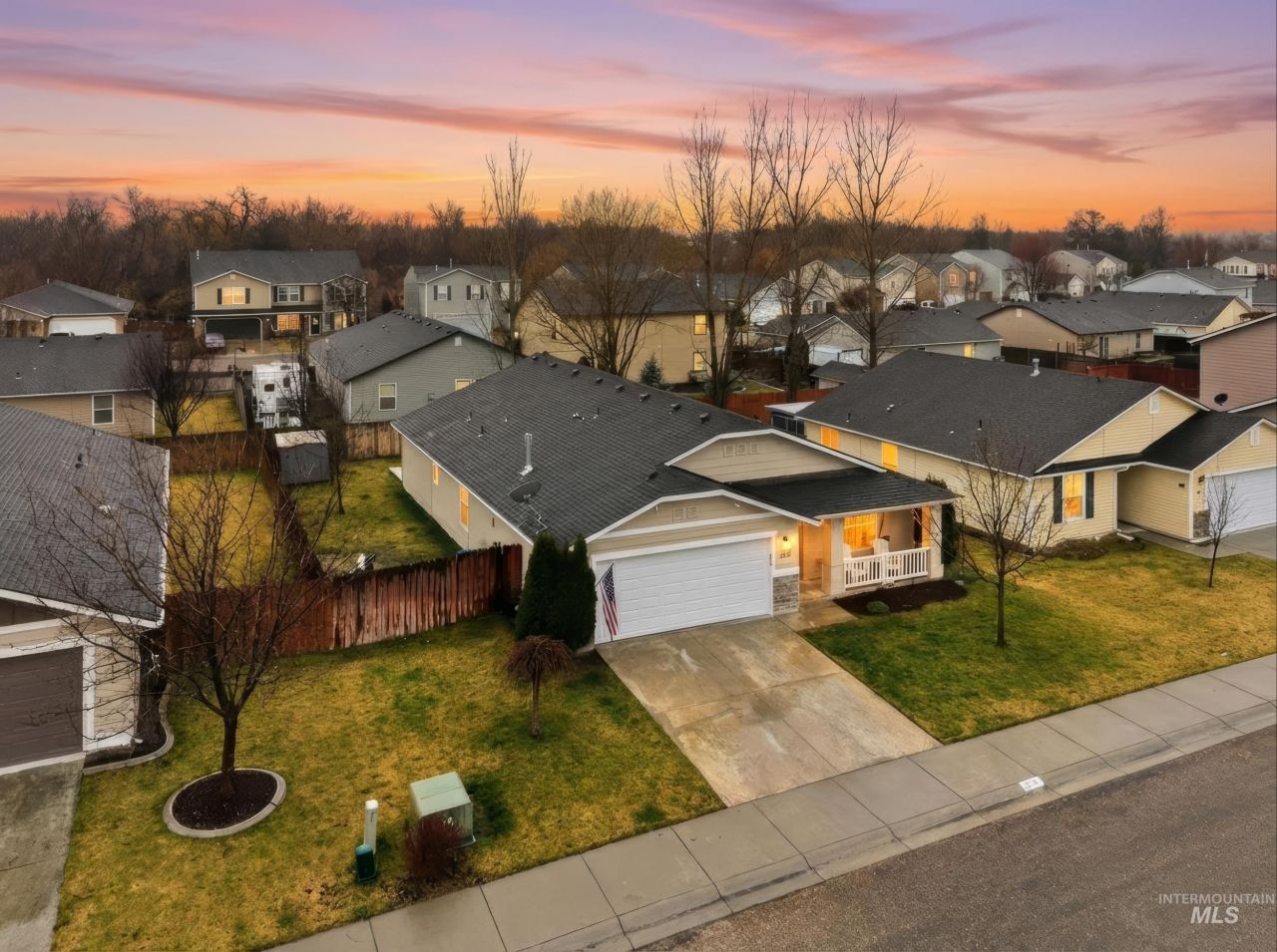 Life moves a little easier in Middleton Lakes. Set among winding neighborhood lakes, parks, and walking paths, 203 E. Walcott Lake St. offers 1,699 square feet of comfortable, well-kept living space designed for simplicity and function. The split-bedroom layout places the primary suite with its generous closet on one side of the home, creating privacy from the two additional bedrooms. An open-concept living, dining, and kitchen area keeps everyone connected, while the covered back patio invites quiet mornings or relaxed evenings outdoors. The backyard includes a small storage shed and side-yard space with potential for trailer, boat, or recreational parking with a little creativity. With tidy curb appeal and a manageable lot close to schools, shopping, restaurants, and daily conveniences, this home is going to be someones perfect next chapter.