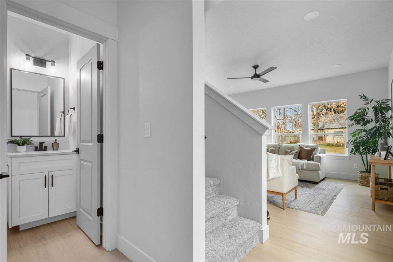 Brand new and custom built in the heart of downtown Nampa with no HOA, this home offers the rare combination of modern design and unbeatable location. Just minutes from local restaurants, coffee shops, parks, and everyday conveniences, youll love being right in the center of it all. Inside, youll find 3 bedrooms, 2.5 baths, and 1,515 square feet of thoughtfully designed living space with 9-foot ceilings and an open, light-filled layout. All bedrooms are located upstairs, including a spacious primary suite with a large walk-in closet and private bath, creating a quiet retreat, separate from the main living areas. The kitchen is clean and timeless with quartz countertops, white cabinetry, under-cabinet lighting, stainless steel appliances, and a generously sized island. The kitchen opens naturally to the dining and living areas, making the home feel connected and easy to live in. Enjoy a fully fenced backyard and an attached 2-car garage. If youve been waiting for something new, custom, and truly walkable in downtown Nampa ? this is it.