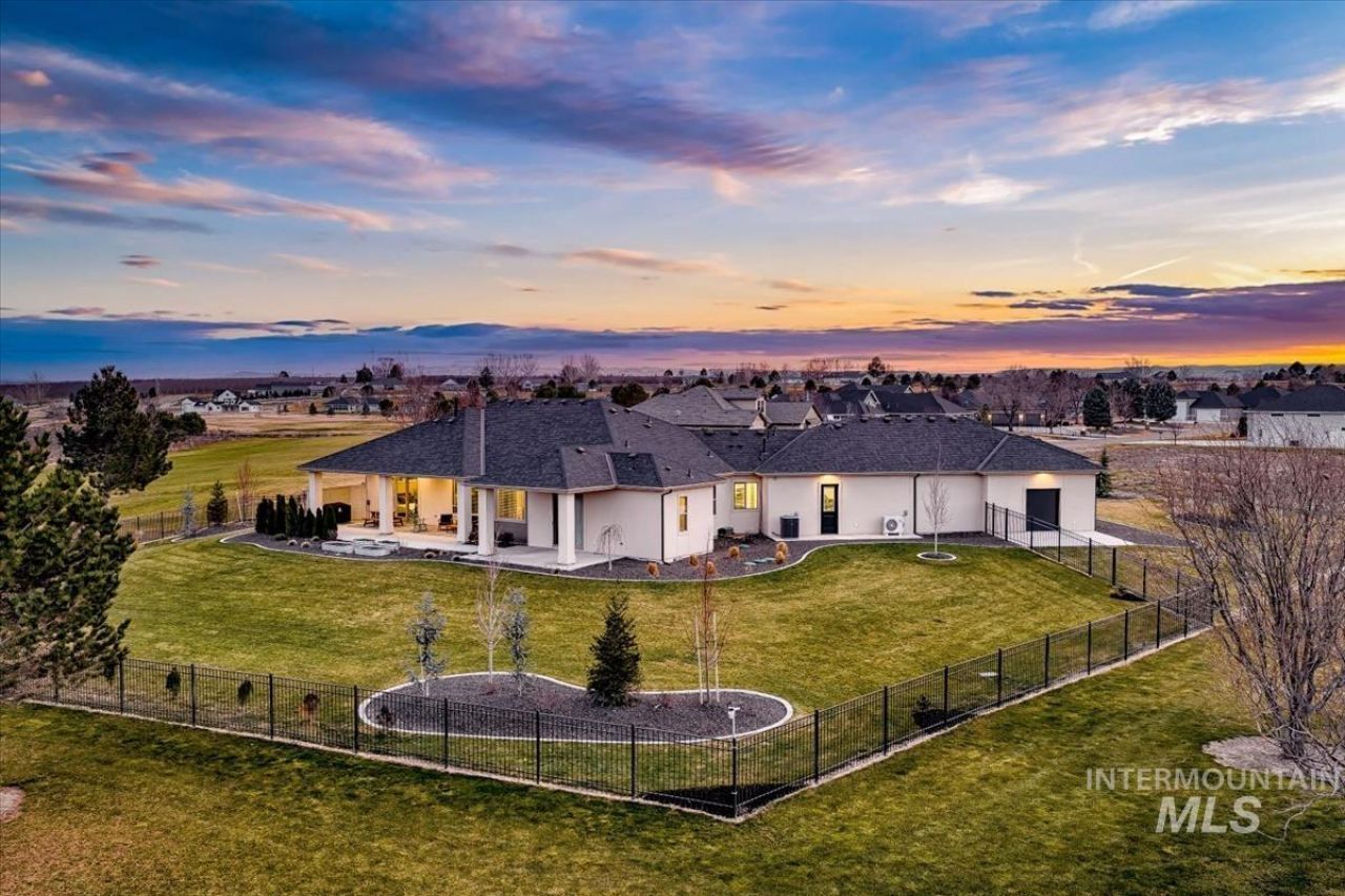 OPEN SATURDAY 1:00-3:00: Located on the end of a culdesac at the award-winning TimberStone Golf Course, this exceptional SINGLE-LEVEL residence offers luxury living in one of the areas most desirable neighborhoods. At the heart of the home, the open-concept Kitchen features a Butlers Pantry and flows seamlessly into the Dining Area, Great Room, and Den?creating a central gathering space for entertaining and everyday living. A wall of windows and soaring ceilings enhance the main living area, while maple hardwood floors extend throughout. The Primary Suite includes heated tile flooring, soaking tub, walk-in shower, spacious walk-in closet, and direct access to the covered patio with golf course, mountain, countryside and Bogus Basin views. The fourth bedroom offers flexibility as a private office or bonus space, and a separate Guest/In-Law Suite adds versatility. The fully finished, heated and air-conditioned garage offers 1,525+ SF with a tri-entry 3XL+ connected bay and single pull-through. The fully fenced backyard borders the golf course and features full landscaping with automatic irrigation, a large, covered patio, and ample space for outdoor entertaining. Located within 15 minutes of multiple wineries and small-town restaurants, this setting allows for a full day of golf followed by wine, dining, and entertainment nearby.