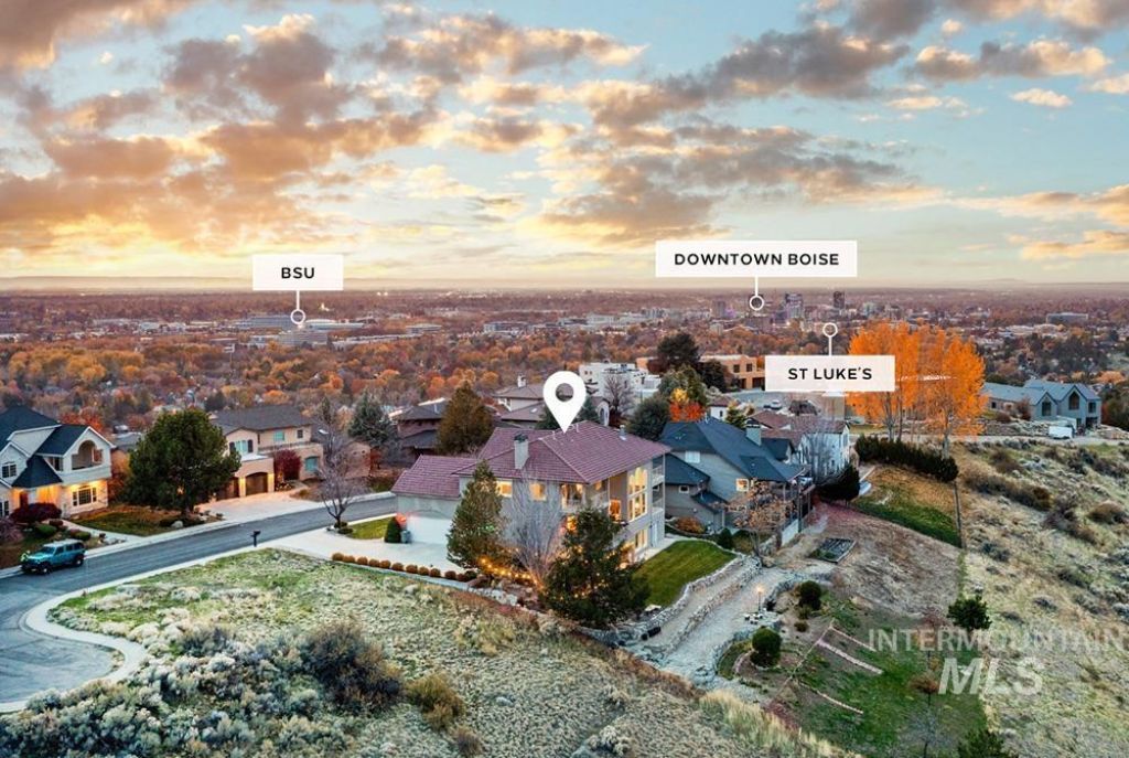 Live among the rolling foothills in East Boises premier Morningside Heights, one of the citys most peaceful & discreet enclaves. Set on nearly half an acre on a double cul-de-sac street with no through traffic, this custom one-owner residence offers privacy, scale, & sweeping foothill views from nearly every room. Traditional architecture, both enduring & newly resurgent, showcases rich millwork, soaring ceilings, & expansive windows designed to capture the landscape & ever-changing skies. The private grounds live like a secluded overlook, with mature landscaping, flagstone walkways, lush lawn, multiple patios, & balconies at every level. Inside, formal living & dining rooms lead to a dramatic great room with two-story windows oriented to the views. The kitchen features a large island, cherry cabinetry, & professional-style gas range & refrigerator. 4 bedrooms are privately set upstairs, including primary suite with sitting room, fireplace, balcony, luxurious bath & expansive California Closet. A main-level guest bed & bath, & a walk-out lower level with bonus room, theater, bed & bath provide flexibility for multi-gen living or hosting on a grand scale. Beautifully finished 3-car garage includes Polyaspartic-coated floors & abundant storage. Moments from St. Lukes, Micron, downtown & the foothill trail system, this is a home where timeless quality meets an extraordinary setting.