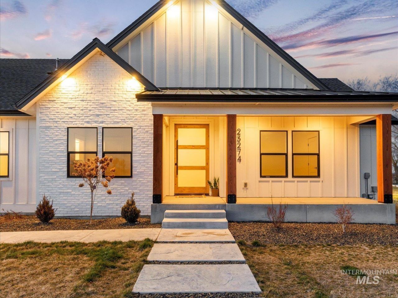Custom Modern Farmhouse set on 3.29 acres in the peaceful countryside of Greenleaf, this thoughtfully designed home offers a rare combination of space & privacy w/ no back neighbors and amazing views. Offering 2,054 sq ft on the main level & 2,054 sq ft of unfinished basement ready for you to make it your own. Featuring 3 bedrooms, 2.5 bathrooms on the main level, this property provides a functional layout suited for todays buyers seeking room to live, work and grow. The spacious basement offers flexibility for additional living space, multigenerational use or entertainment. With no HOA and convenient access to I-84, this property delivers quiet country living without sacrificing accessibility. The land is fully equipped with irrigated pasture, water shares included and pressurized irrigation! This is ideal for animals, recreation or future expansion. Inside, the open-concept floor plan is complemented by vaulted ceilings, quartz countertops throughout, LVP flooring and a 48 natural gas range. The home is serviced by all-natural gas (Unique for this location) and a robust 400-amp electrical system with transformer, supporting future shop construction, hobbies or additional improvements. Automotive and recreation enthusiasts will appreciate the oversized garage with overhead storage, Tesla charger and additional 50-amp exterior plug. This property is truly one of a kind!