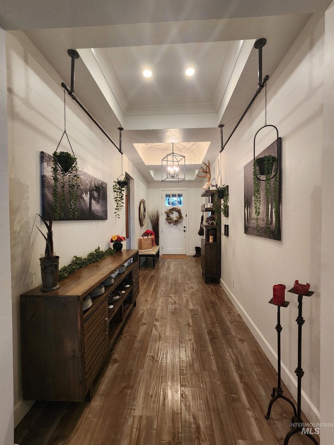 3 bedroom, 2 bath custom home on .28 acres, with 2,017 sq ft of living space. Manicured landscaping, charming front porch, craftsman style with 3 car garage. 9 coffered/tray ceiling in entryway, living room & primary suite. Large windows provide plenty of natural light with custom shutters. Open floor plan has a gas fireplace, chefs kitchen, custom cabinets, premium light fixtures, large deep farm sink, gas range, KitchenAid appliances, big island with seating, quartz counter tops, huge pantry with countertop space for appliances & formal dining area. Primary suite has a walk-in closet with custom shelving, soaking tub, dual vanities, makeup counter, walk in shower with custom glass door. Additional 2 bedrooms provide ample space for king beds, office/gym/guest rooms. Generous sized laundry room with folding counter tops, mud room/coat/shoe storage built in & ample storage closets. LVT & tile flooring throughout. Outside enjoy partially covered deck with attached custom stone paver patio, pergola & beautiful gas fire pit. Back yard has a basketball court, RV/trailer/boat parking, fully landscaped, fenced yard, curbing, raised garden/flower beds, drip lines for potted/hanging plants, 5 producing grape vines, automatic exterior landscape lighting, 4 zone sprinkler system & irrigation water. Meticulously maintained home with mountain views from dining room & backyard.