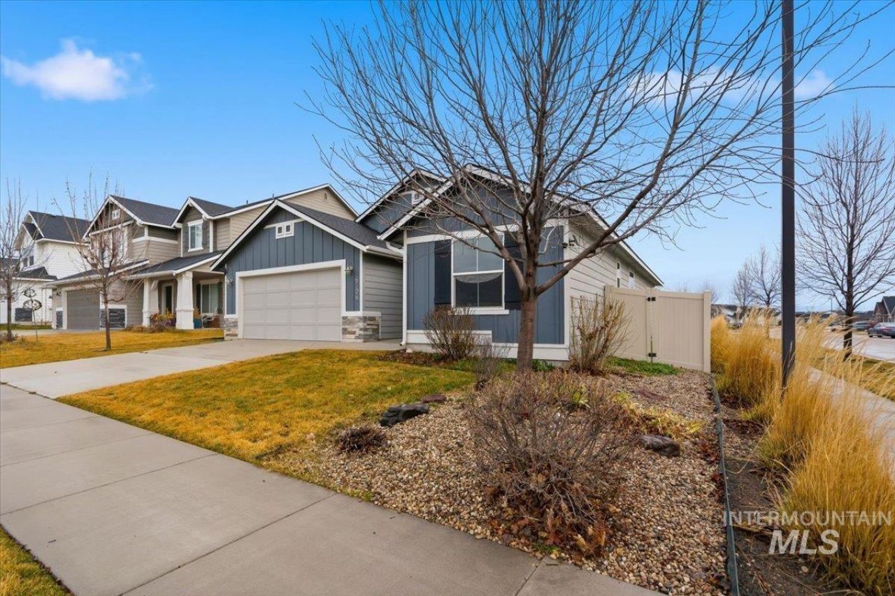Welcome to this well-maintained single-level home in the desirable Springhill subdivision in Meridian. Offering 1,530 square feet of comfortable living space, the home features a defined entryway and extra-wide hallways that create an open, functional feel. Two secondary bedrooms are located at the front of the home, along with a full bathroom featuring an extended vanity countertop for added convenience. The kitchen includes upgraded cabinetry, stainless steel appliances, and durable engineered vinyl plank flooring, opening to the main living and dining areas?perfect for everyday living. The primary suite offers a dual vanity and walk-in shower, providing a practical and private retreat. Located just minutes from the freeway and downtown Meridian, this newer community offers easy access to shopping, dining, and golf. Unlike many new construction homes, this property already includes completed landscaping, fencing, and a full sprinkler system. The owners have also added a spacious covered patio, making the backyard ready to enjoy from day one.