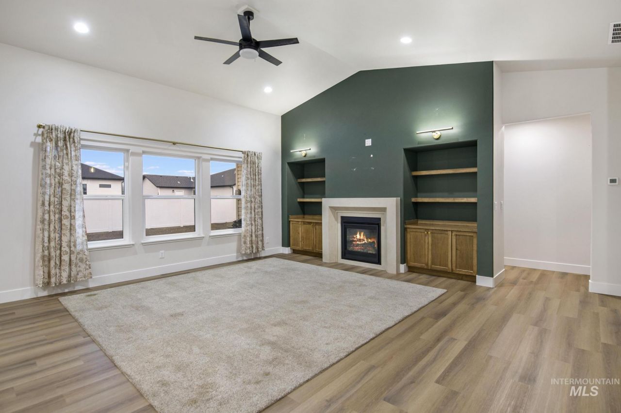 Step inside to an inviting open-concept living area highlighted by a stunning gas fireplace with custom built-ins, creating a warm focal point for gatherings. The chef-inspired kitchen features sleek quartz countertops, premium finishes, and generous workspace-perfect for cooking, hosting, and daily living. The spacious primary suite offers a complete walk-in closet with a beautiful tile walk-in shower and a spa like soaking tub. Three additional main-level bedrooms provide flexibility for family and guest. Enjoy the fully fenced yard for privacy and room to play and entertain. Three car garage provides ample parking and shelving for storage. Located in a growing community of Kimberly, this home offers the perfect blend of small town charm and modern convenience-just minutes from schools, parks, and Twin Falls amenities.