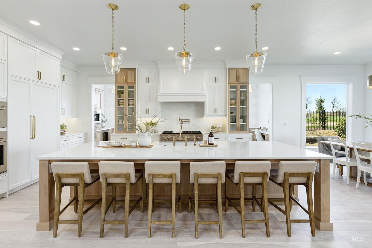 Welcome to the elevated Madison Floor Plan by Highland Homes, an exceptional two-level, waterfront home where thoughtful design meets luxury living. From the moment you enter, the layout blends comfort and sophistication, anchored by an expansive 12-foot kitchen island and a walk-through butlers pantry that make the kitchen ideal for entertaining, complemented by a premier selection of Wolf and Sub-Zero appliances including a steam oven, built-in coffee maker, wine fridge, Sub-Zero refrigerator, and dual dishwashers. The private main-floor primary suite features a spa-inspired bathroom with direct access to the laundry room. Upstairs, youll find a spacious vaulted bonus room, two well-appointed bedrooms connected by a Jack-and-Jill bathroom, and a third bedroom with a private bath?perfect for guests. Enhancing the waterfront lifestyle, the planned upscale landscaping will create a private outdoor retreat with a patio, ambient lighting, and direct water access, all set against unobstructed views of the Boise Foothills?perfect for both relaxation and entertaining.